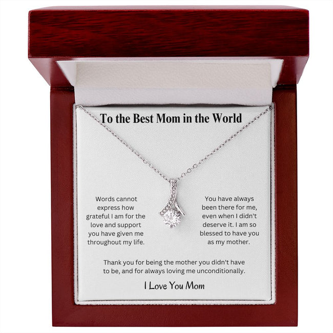 Imagine her reaction when she opens this stunning gift! The Alluring Beauty necklace features a petite ribbon shaped pendant that is sure to dazzle your special someone. Whether it's a birthday or anniversary, make sure to get her a gift she will love for years to come.