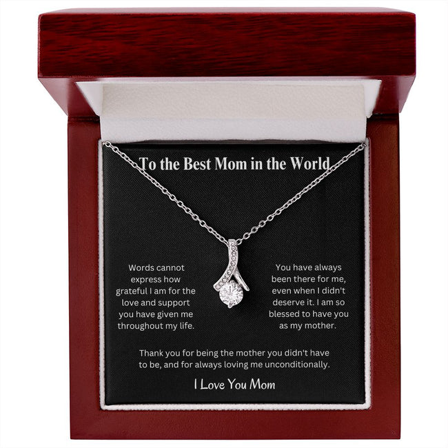 Imagine her reaction when she opens this stunning gift! The Alluring Beauty necklace features a petite ribbon shaped pendant that is sure to dazzle your special someone. Whether it's a birthday or anniversary, make sure to get her a gift she will love for years to come.