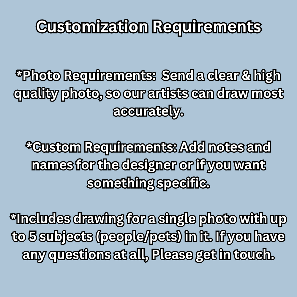 * drawing includes up to 5 subjects, but You can Upload Photos for More and We Will Contact You After Checkout with More Details.