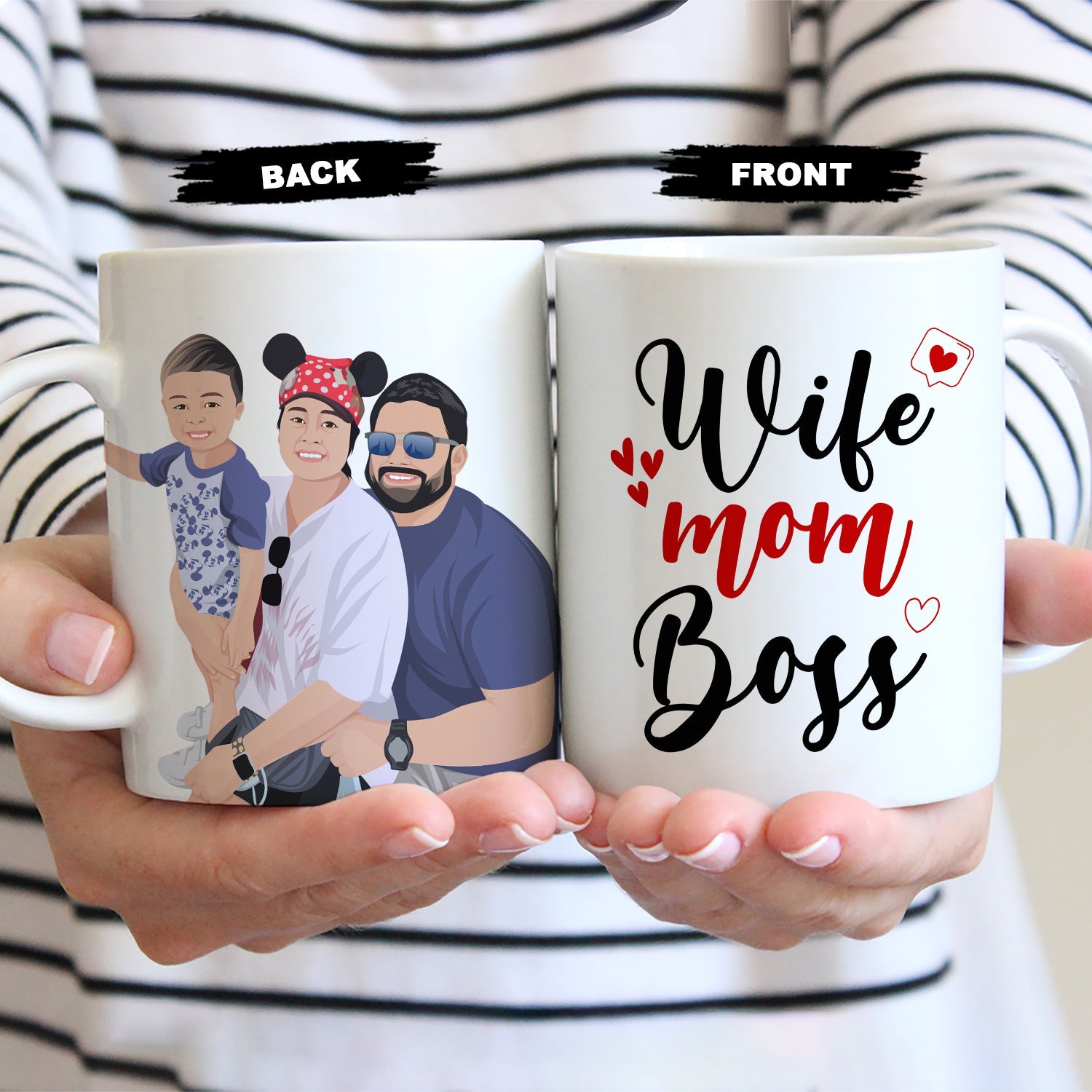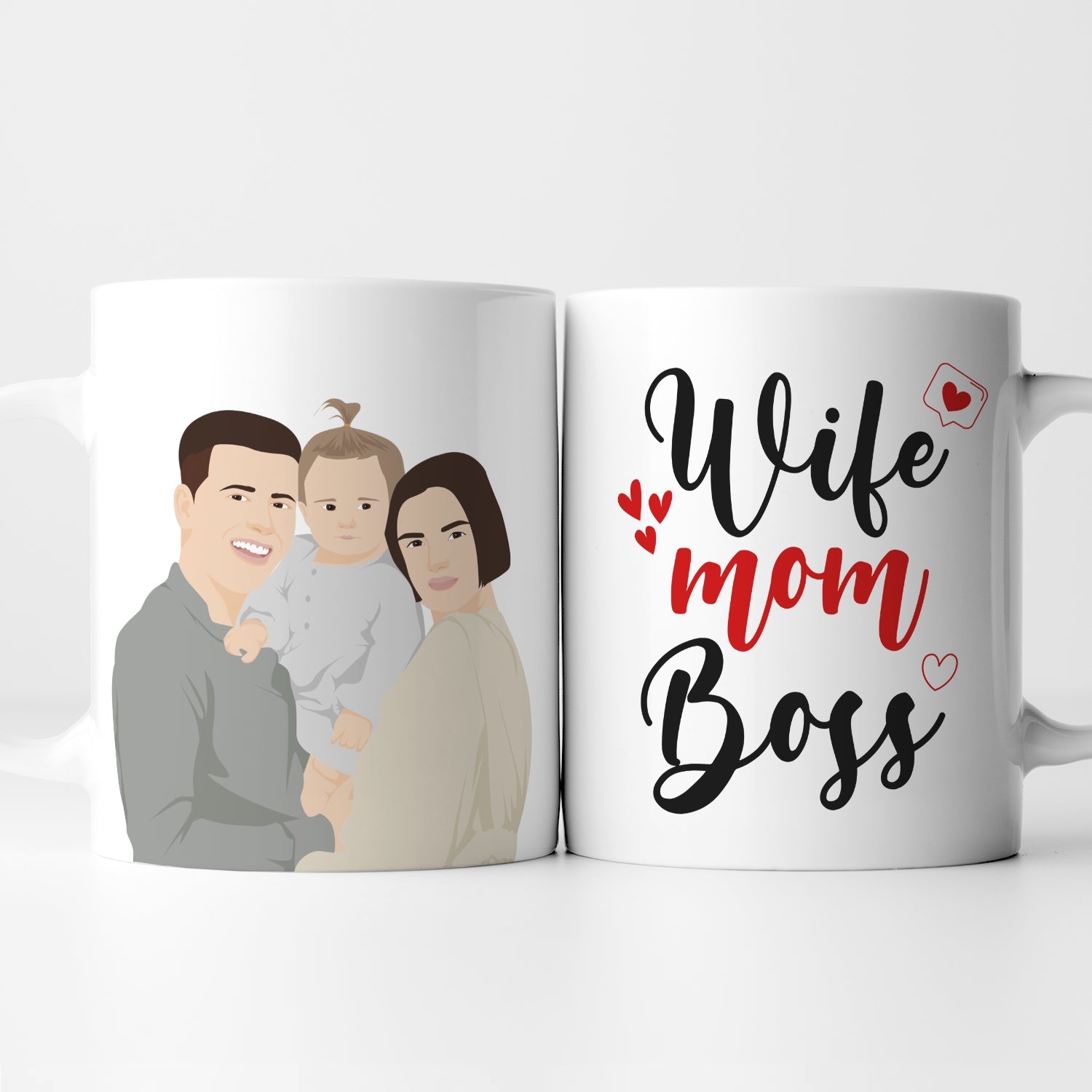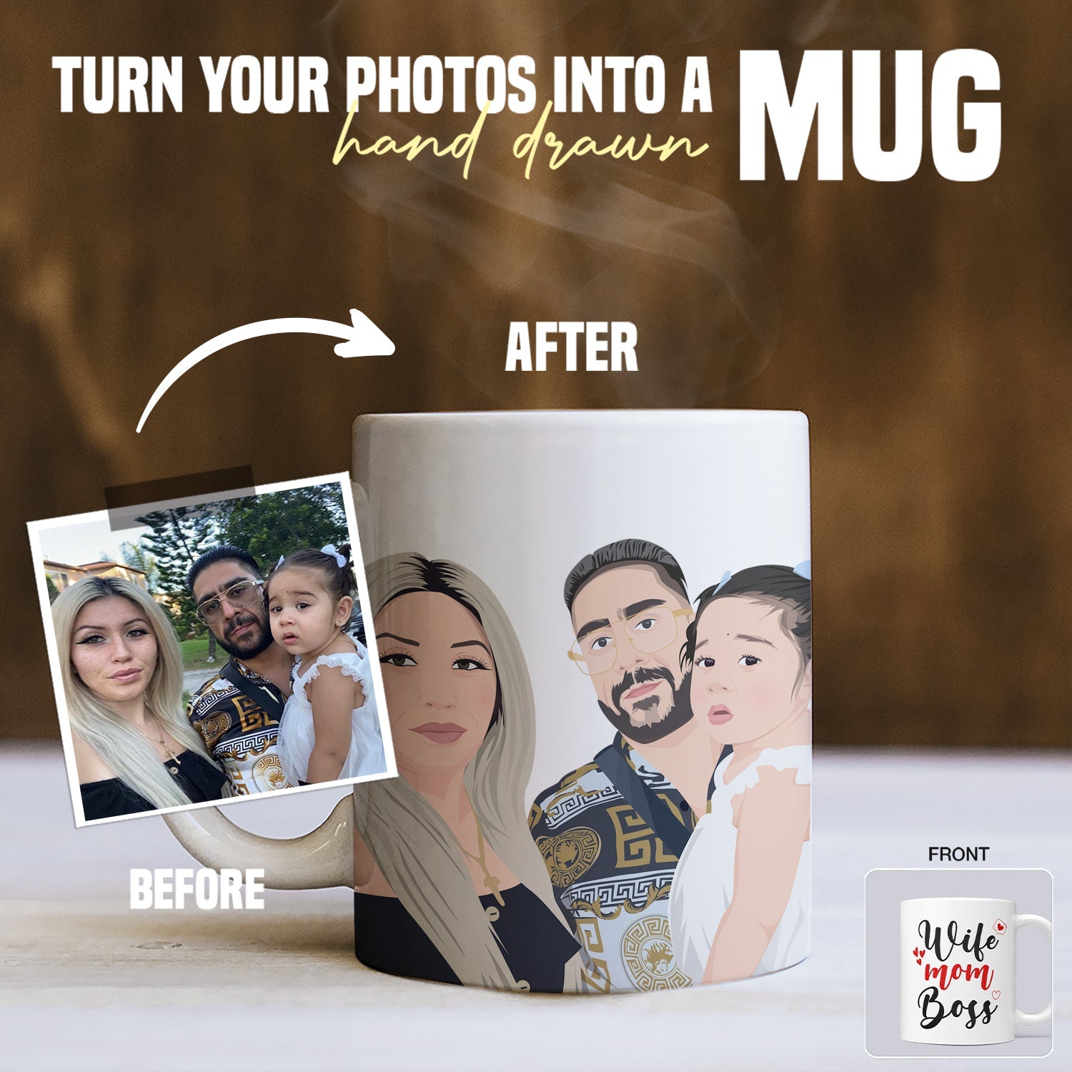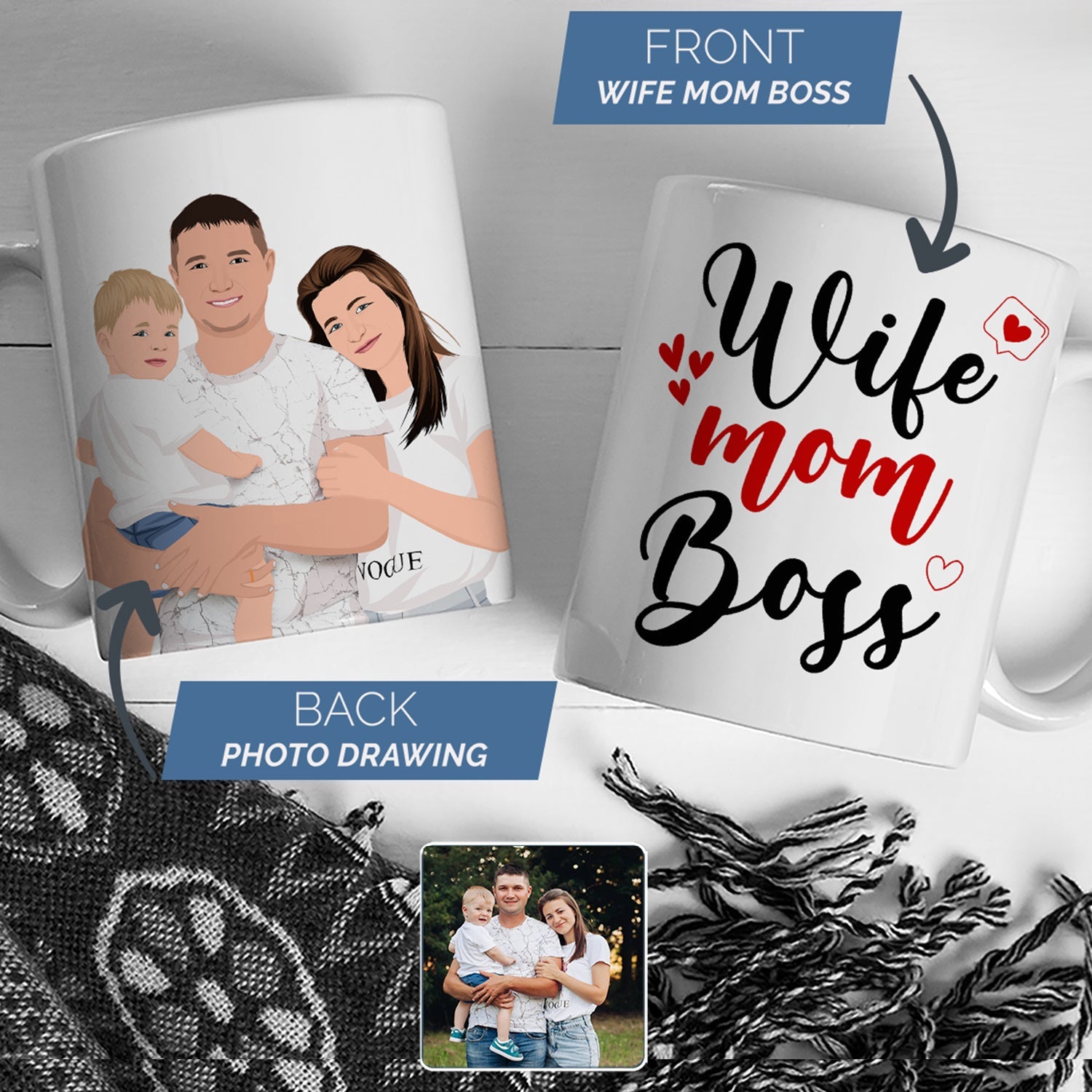 If you're looking for the perfect gift for your amazing wife mom boss, look no further! Our personalized coffee mug is a unique and fun way to show her how much you appreciate all she does. We'll take your favorite photo and turn it into a beautiful hand drawn illustration, printed on the side of our ceramic mug. Whether she's sipping coffee at home or taking a break at work, she'll love drinking out of this one-of-a-kind mug.