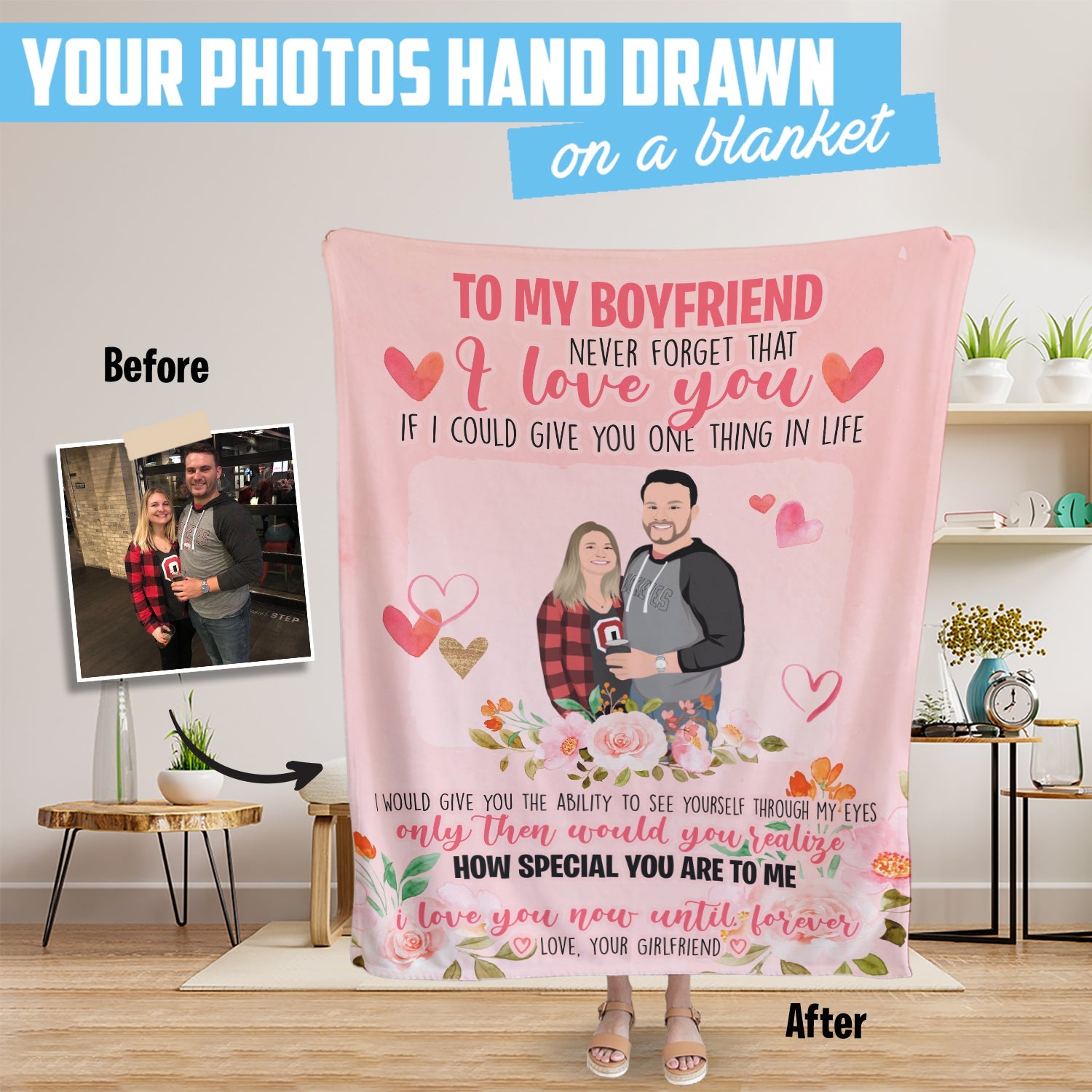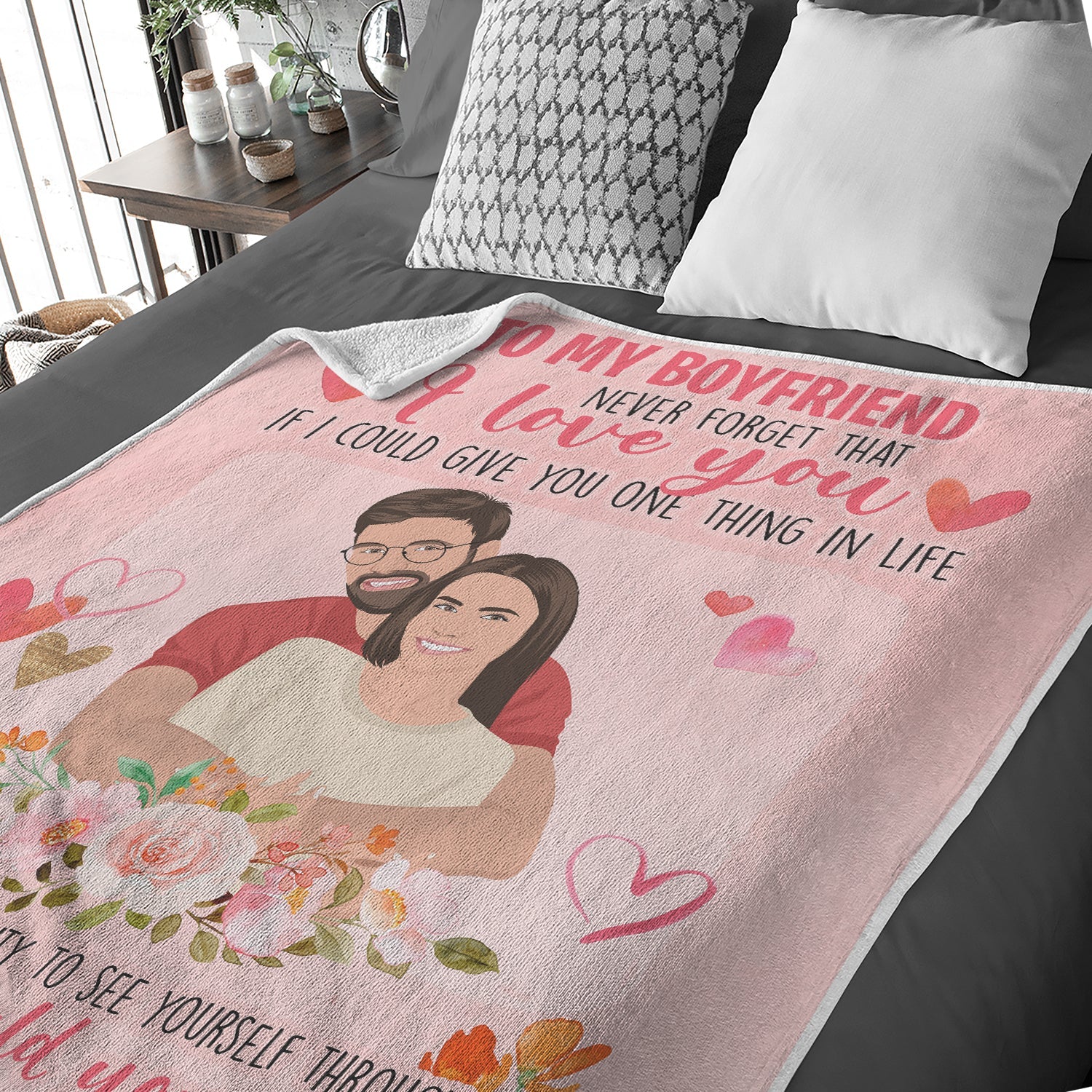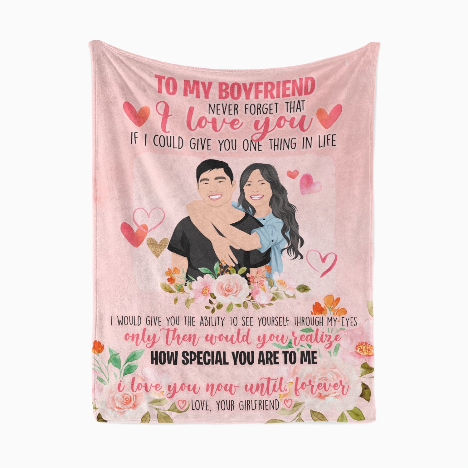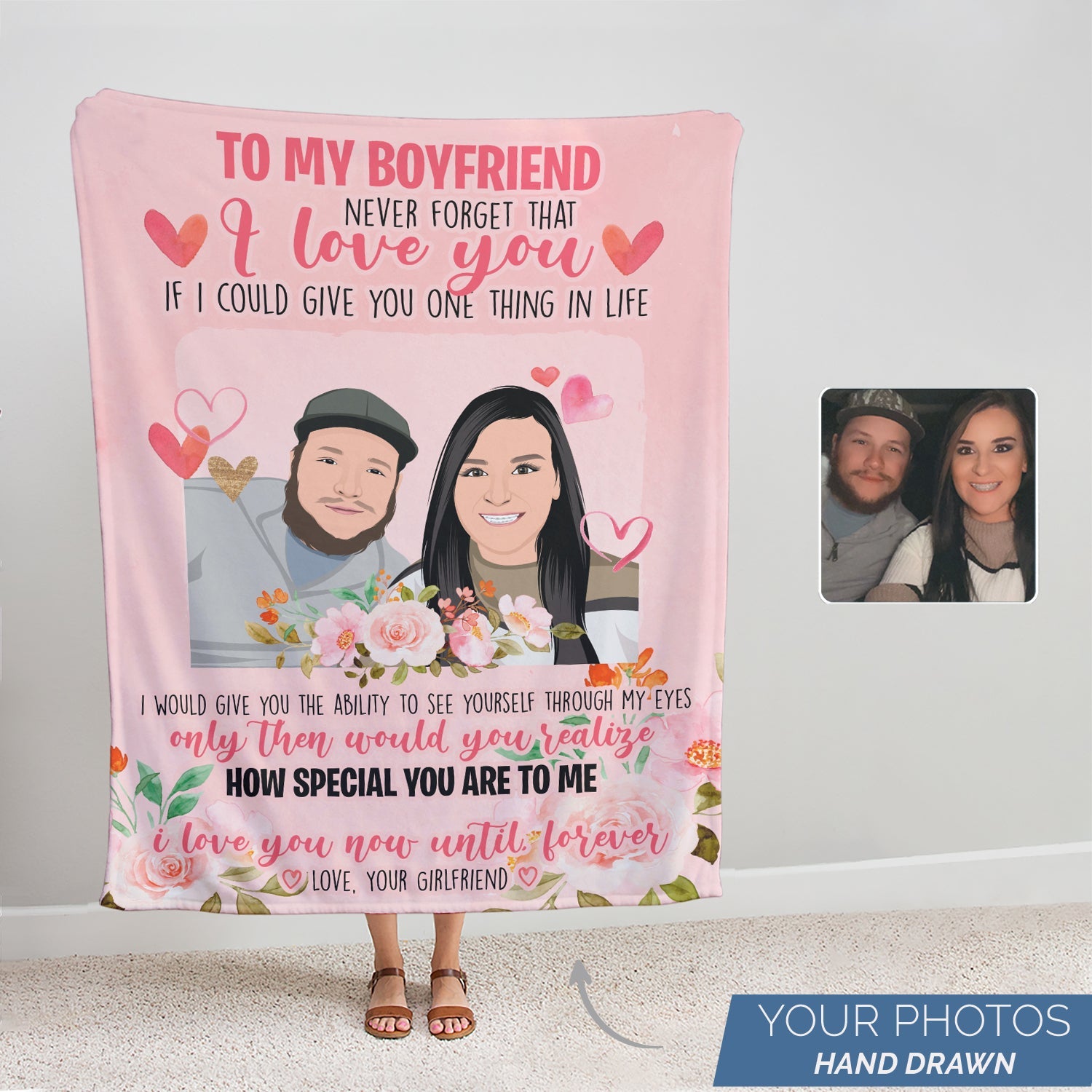 Give the gift of your love to your boyfriend this year with our personalized blanket! He will love being able to snuggle up with you both every time he uses it. We'll take your favorite photos and turn them into beautiful hand-drawn illustrations, printed on a cozy fleece or sherpa throw. So warm and romantic, he'll never want to let go!