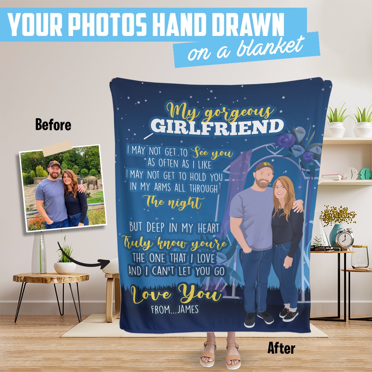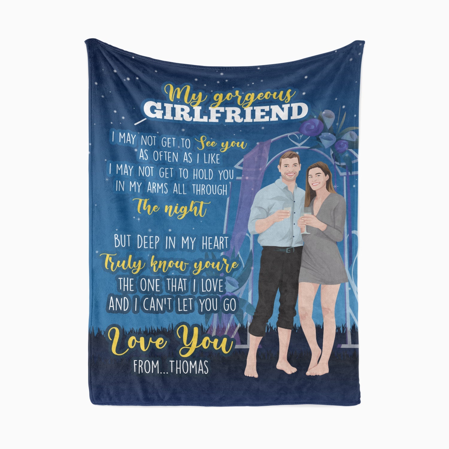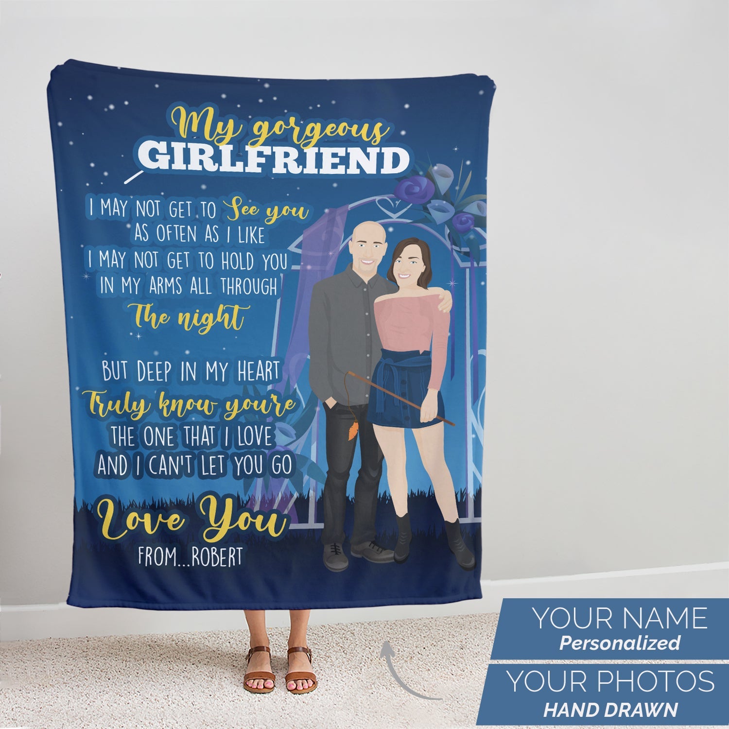 Snuggle up with your loved one all year round with a personalized blanket! Just send us some photos of your girlfriend, and we'll turn her into a custom hand-drawn illustration to be printed on the softest fleece or sherpa throw. Whether you're watching a movie together on the couch or just trying to get warm under the covers, this is the perfect way to show your love.