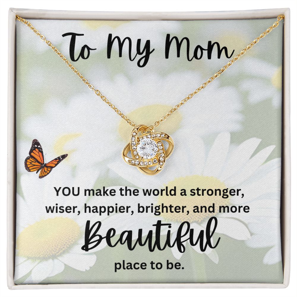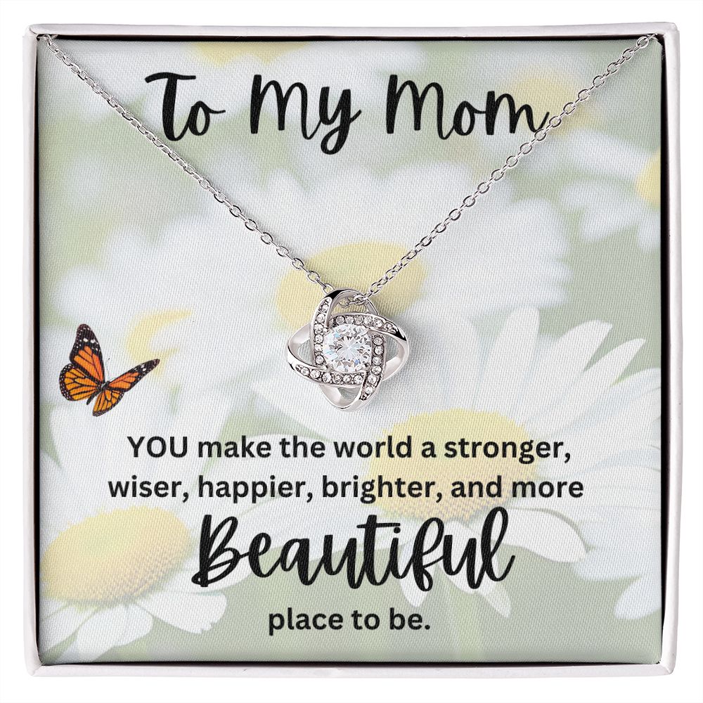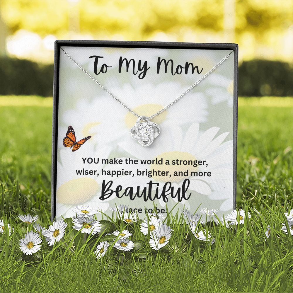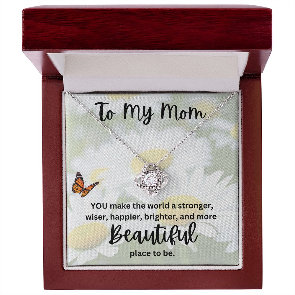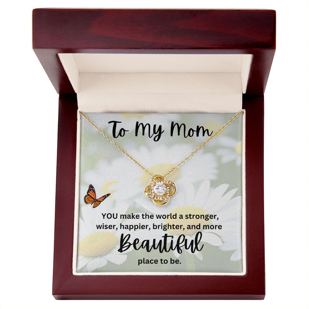 But this necklace is more than just a beautiful accessory - it's a symbol of your unbreakable bond. The love knot design represents the strength and enduring nature of your relationship, making it the perfect gift for any occasion. Plus, with the included soft touch box, you can easily present it to her in style. Upgrade to the mahogany luxury box for an extra touch of sophistication, complete with a dazzling LED spotlight. Surprise her with this gorgeous gift today and show her just how much you care.