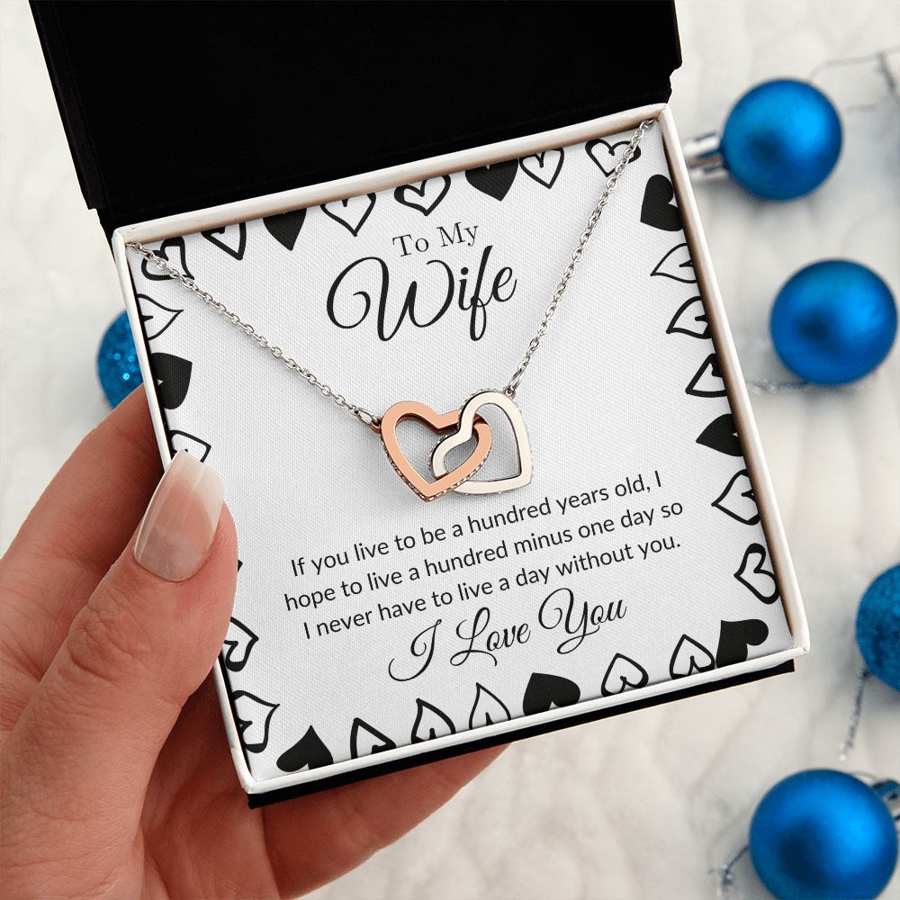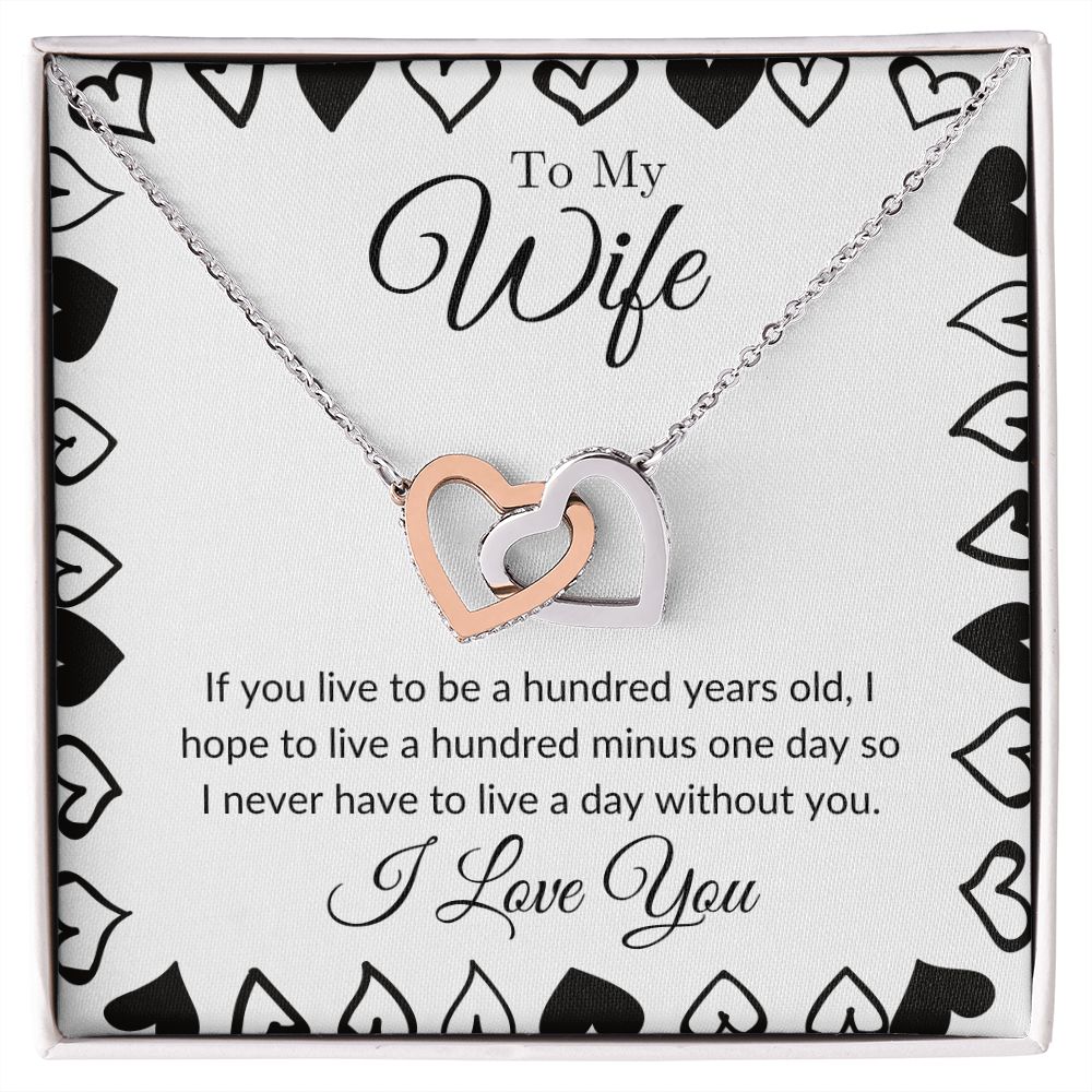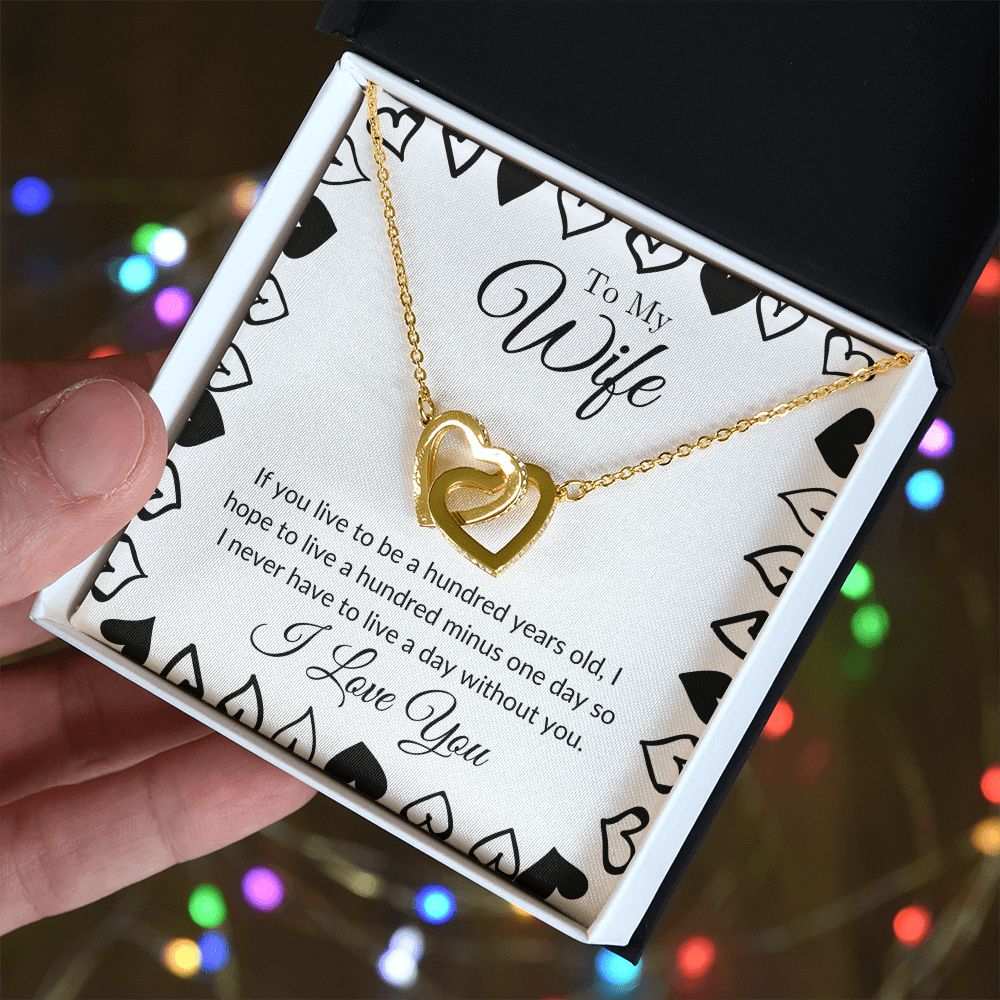 To My Wife - I Never Want to Live a Day Without You Interlocking Hearts Necklace