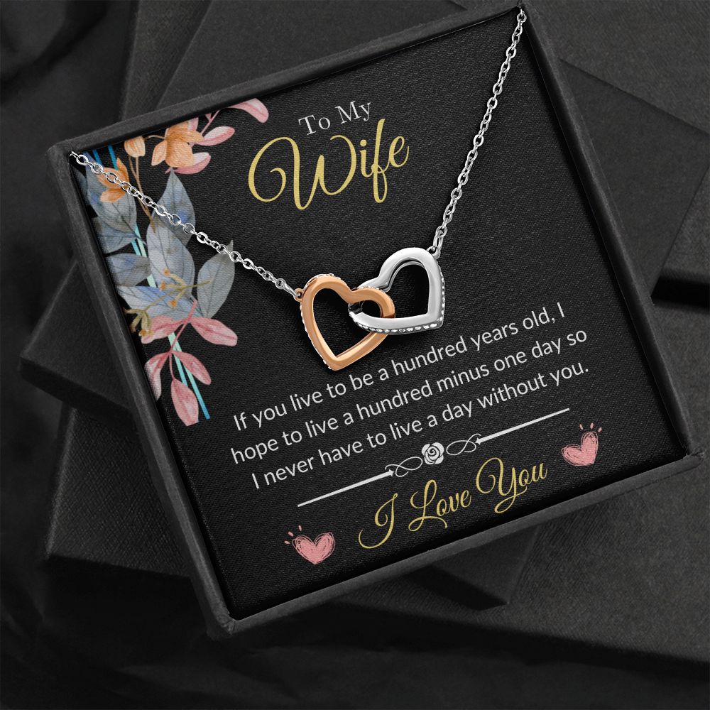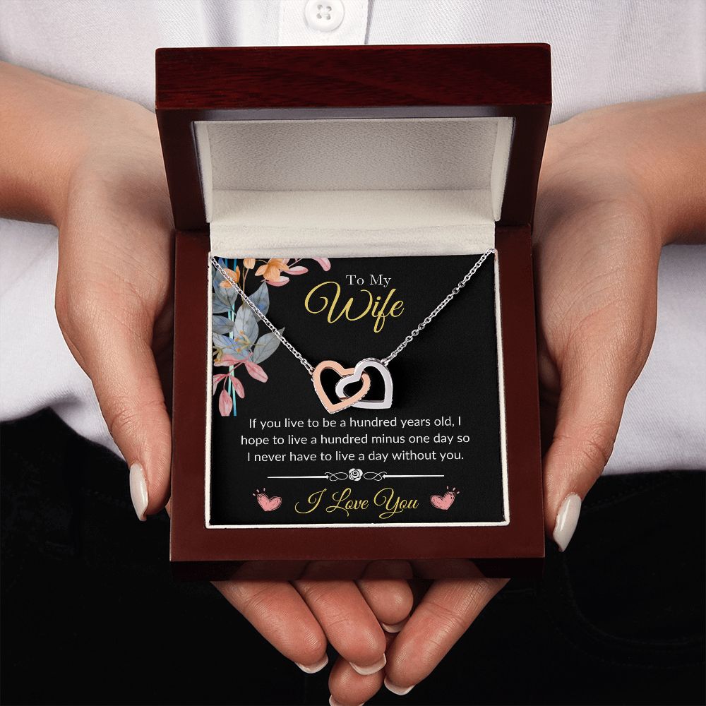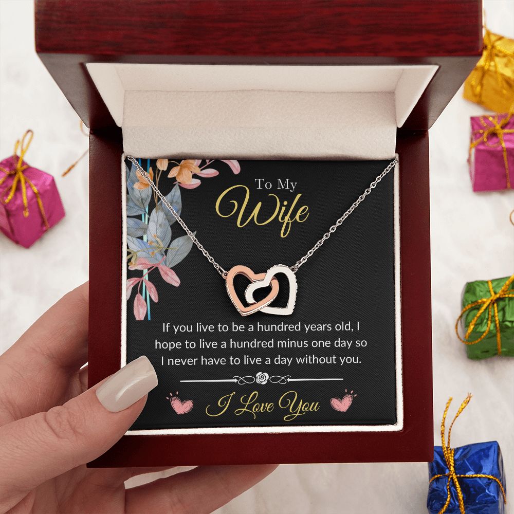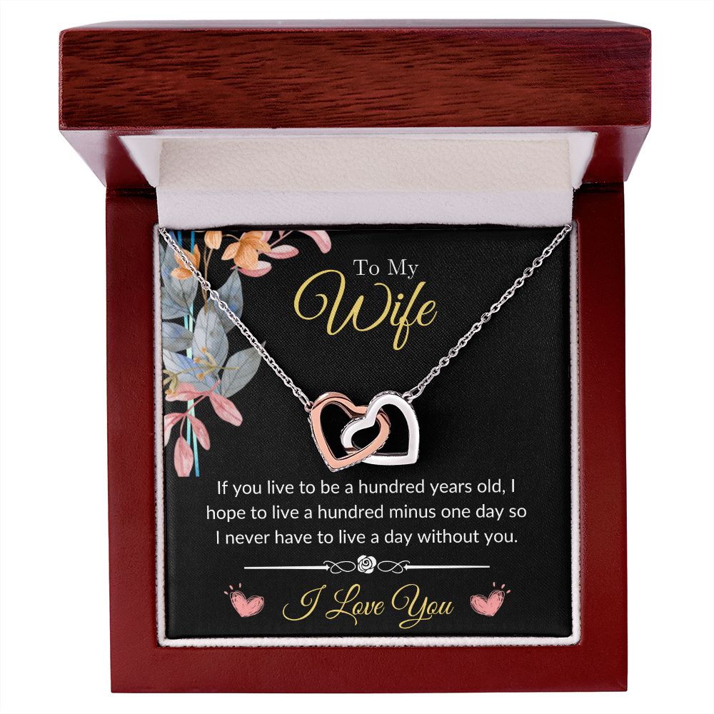 To My Wife - Never Want to Live a Day Without You Interlocking Hearts Necklace
